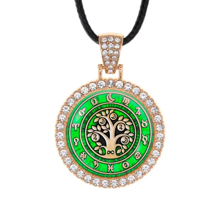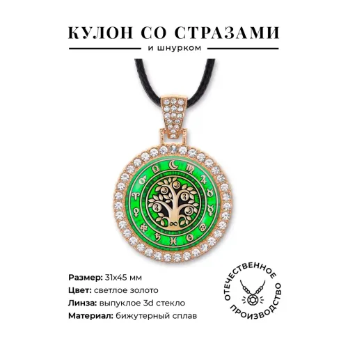 Кулон «Дерево здоровья» из бижутерного сплава со стразами и выпуклой стеклянной линзой.