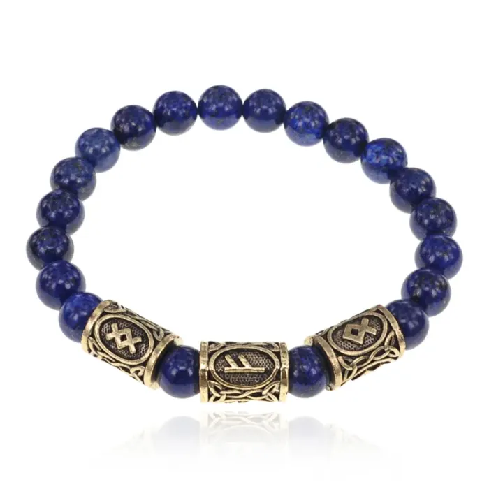 Рунический браслет Денежный канал с нат.камнем Лазурит 8мм BSRH-018