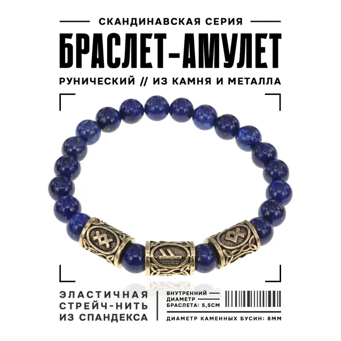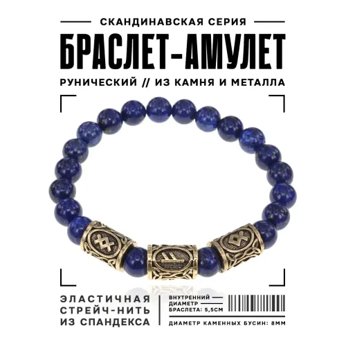 Рунический стрейч-браслет из натурального камня лазурит с символами рун.