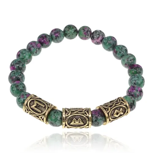 Рунический браслет Сдвиг в отношениях с синт.камнем Цоизит 8мм BSRH-025