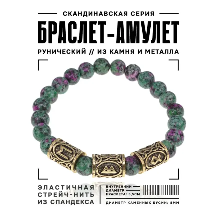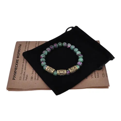 Размеры и комплектация: Диаметр бусин 8 мм, внутренний диаметр браслета около 5,5 см. Комплектуется прозрачным пакетом с еврослотом, бархатным мешочком и буклетом с описанием рун Эваз, Беркана, Одал.