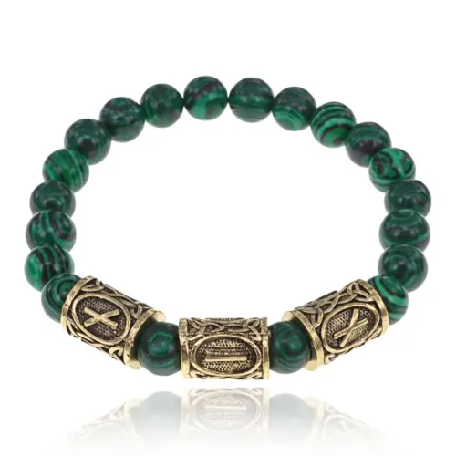 Рунический браслет Самопознание с синтетическим камнем Малахит 8мм BSRH-026