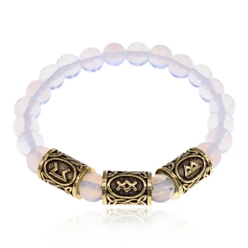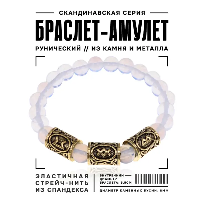Рунический стрейч-браслет с бусинами из синтетического лунного камня диаметром 8 мм.