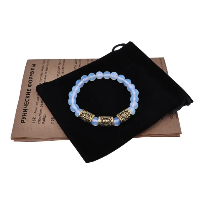 Рунический браслет Привлечение партнера по судьбе с синт.камнем Лунный камень 8мм BSRH-027
