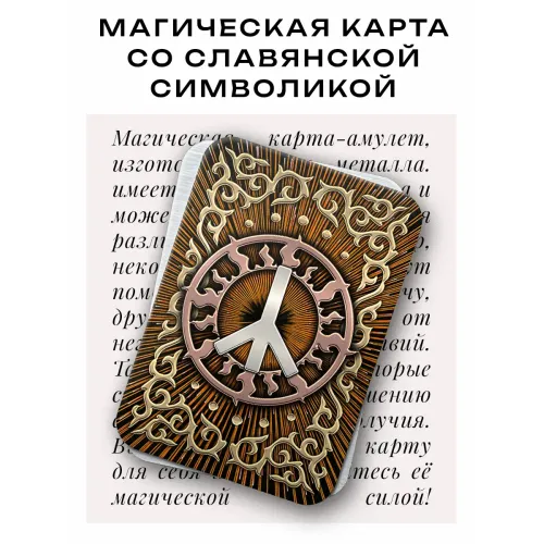 Славянская магическая карта, выполненная из прочного металла толщиной 0,45 мм. Размер карты составляет 56х80 мм. Упакована в прозрачный пакетик с описанием. Символ Чернобога традиционно ассоциируется с прорывом и выходом из замкнутого круга, разрушением старых связей и уверенным движением вперёд. Этот артефакт может стать ценным элементом для тех, кто стремится к переменам и новым возможностям.