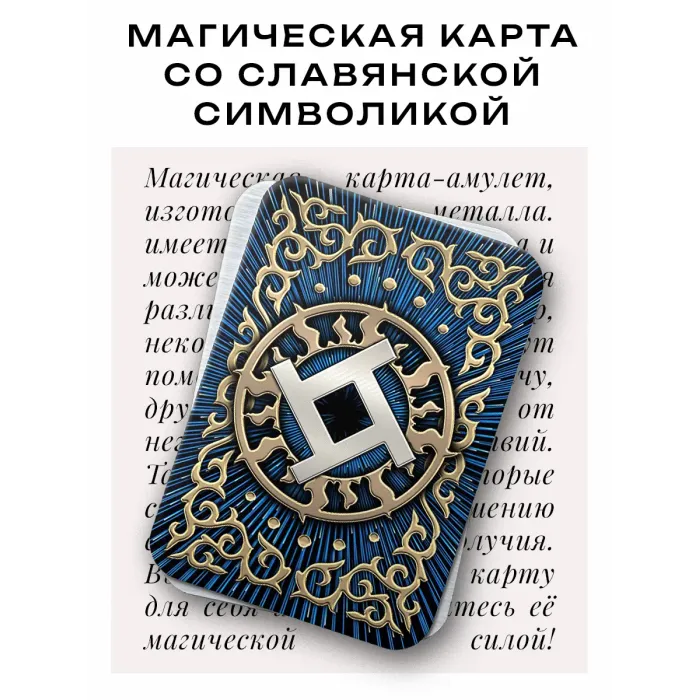 Славянская магическая карта, выполненная из металла толщиной 0,45 мм. Размер карты составляет 56х80 мм, что делает её удобной для ношения и использования в повседневной жизни. Упакована в прозрачный пакетик с описанием, что позволяет сохранить её в идеальном состоянии. Символ Коляда олицетворяет чистоту и священность, помогая преодолевать зло и тьму. Эта карта традиционно используется для привлечения добра и света в жизнь, создавая атмосферу торжества и надежды.