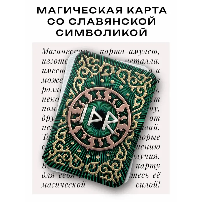 Славянская магическая карта, изготовленная из металла толщиной 0,45 мм, является уникальным сувениром с глубоким символическим значением. Размер карты составляет 56х80 мм, что делает её удобной для хранения и использования. Упакована в прозрачный пакетик с описанием, она станет отличным подарком или элементом декора.