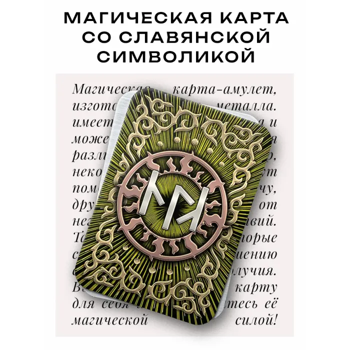 Славянская магическая карта, выполненная из металла толщиной 0,45 мм, станет прекрасным символом гармонии и любви в семье. Размер карты составляет 56х80 мм, что делает её удобной для хранения или подарка. Упакована в прозрачный пакетик с описанием, она содержит славянскую руническую формулу Семейное счастье, которая традиционно используется для укрепления отношений и разрешения разногласий между супругами. В состав формулы входят руны Нужда, Леля и Алатырь, каждая из которых несёт свой уникальный смысл и силу. Этот сувенир не только украсит дом, но и поможет создать атмосферу взаимопонимания.
