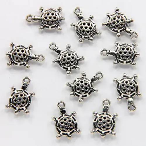 Подвеска для бижутерии в виде круглой черепахи из бижутерного сплава с серебряным покрытием.