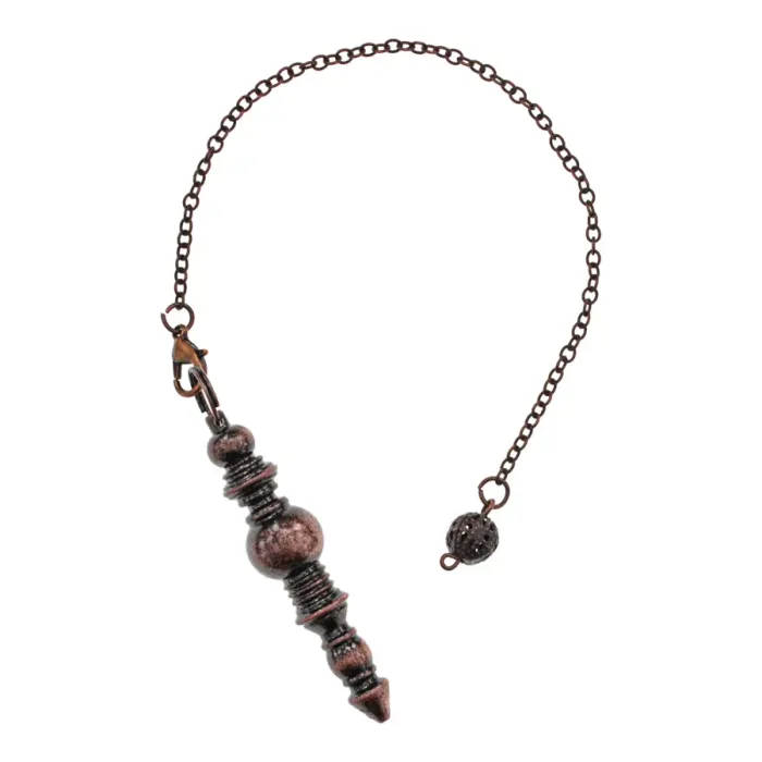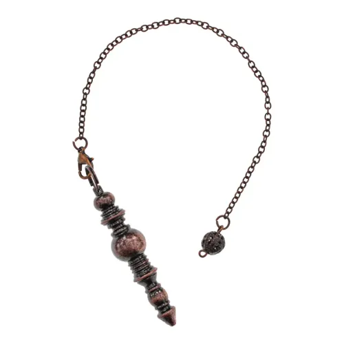 Маятник для биолокации — это уникальный инструмент, который традиционно используется в практике поиска и определения энергетических полей. Он выполнен из металла с покрытием под медь, что придаёт ему элегантный вид и прочность. Основные характеристики: размер маятника составляет 50х10 мм, а длина цепочки — 18,5 см. Тип замка — лобстер, обеспечивающий надежное крепление.