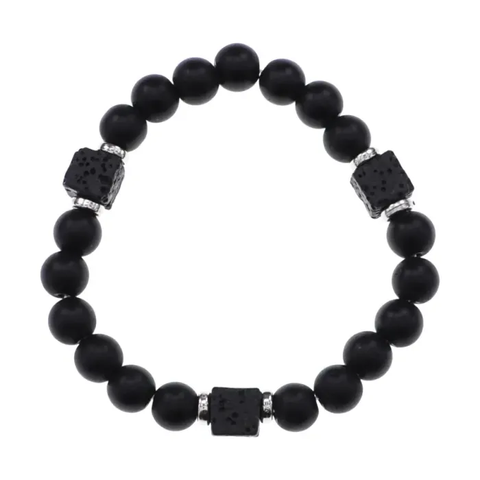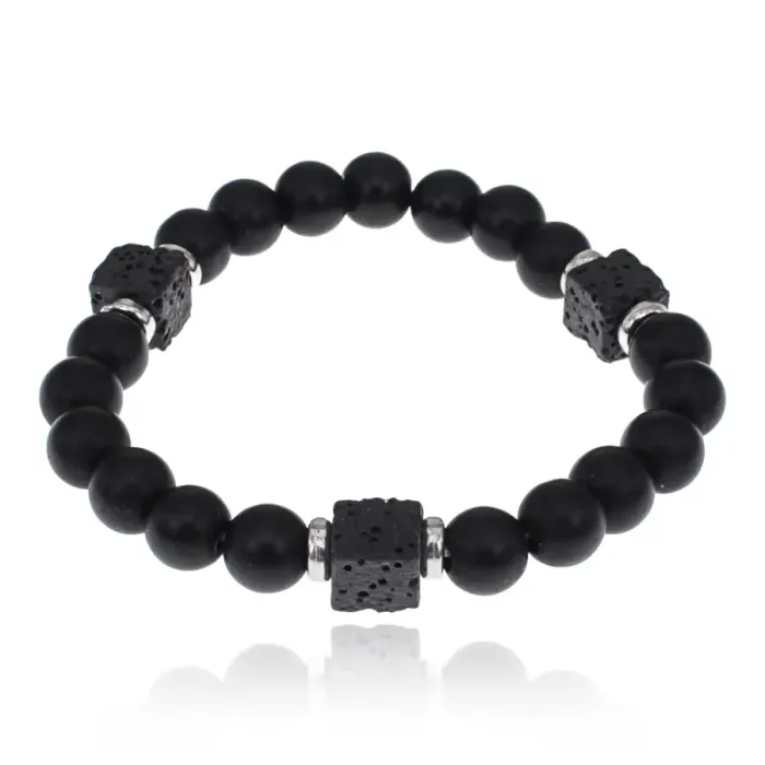 Стрейч-браслет из бусин натуральной лавы и синтетического шунгита диаметром 8 мм.