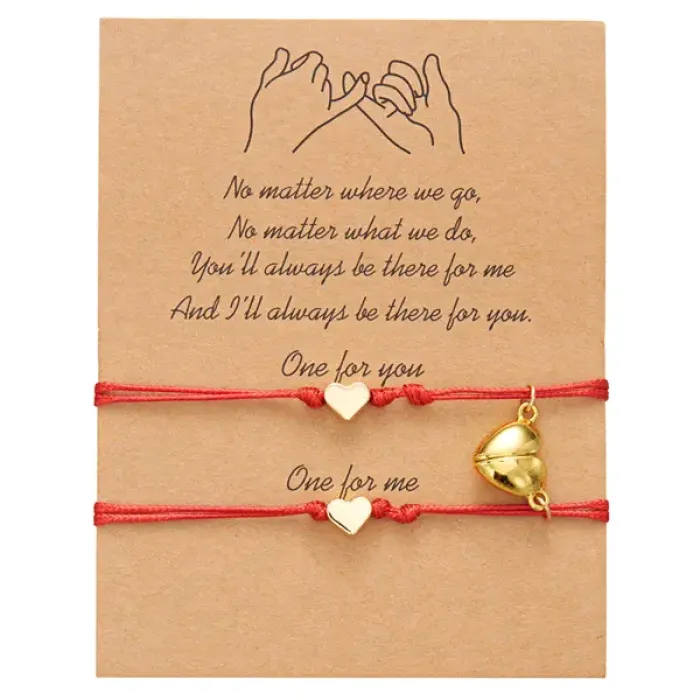 Парные браслеты из текстиля и металла с золотым покрытием. Коннекторы выполнены в форме сердца.