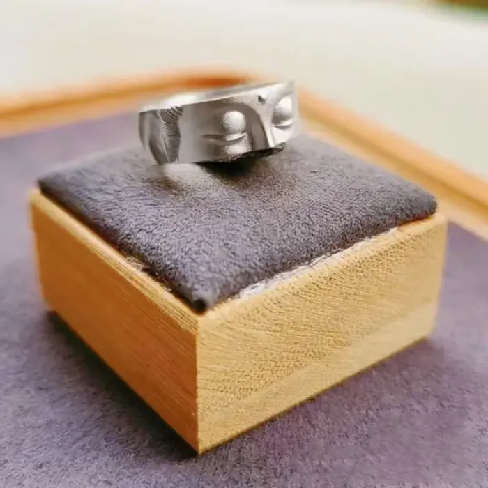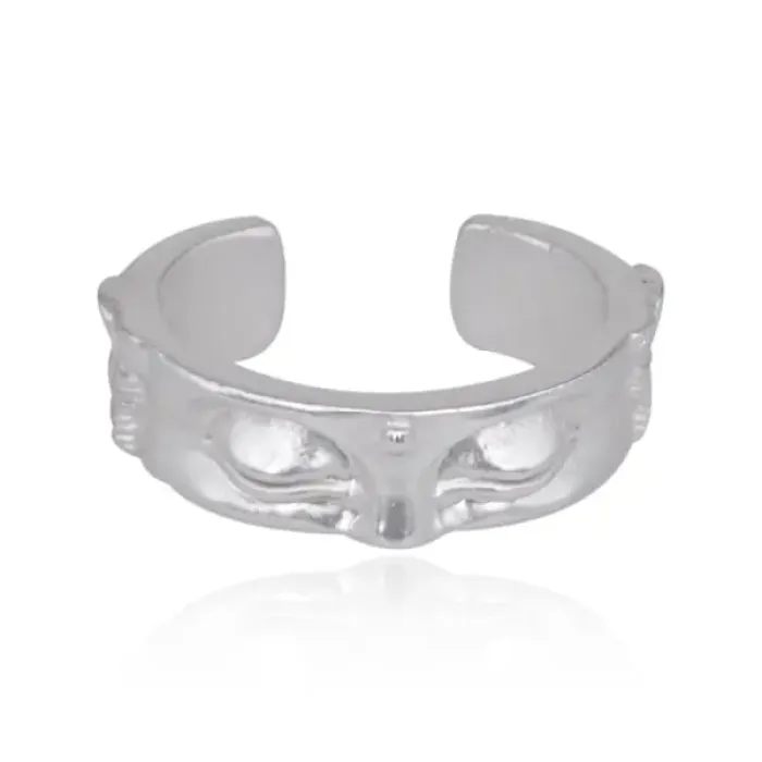 Безразмерное кольцо с изображением Будды. Изготовлено из металла с покрытием под серебро.