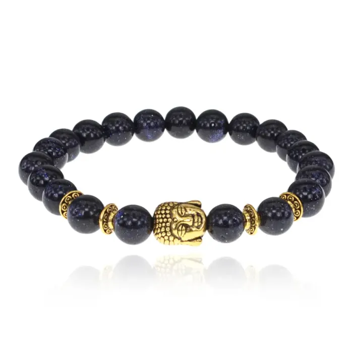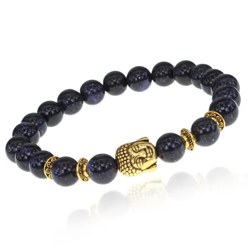 Браслет-амулет Будда с синт. камнем Синий авантюрин 8мм BSHE-01-02G