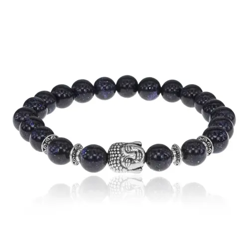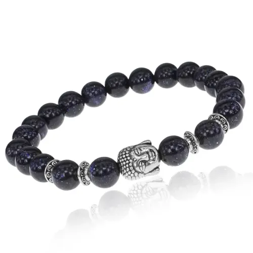 Стрейч-браслет с бусинами из синего авантюрина и декоративным элементом в виде головы Будды.