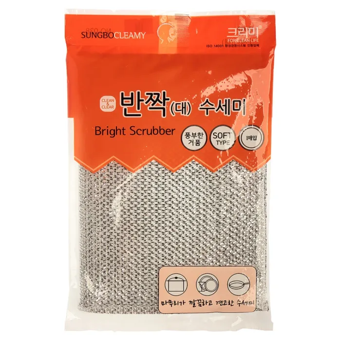 Скруббер для мытья посуды Bright Scrubber L от Sung Bo Cleamy — это надежное решение для эффективной очистки кухонных принадлежностей. Изготовленный из нейлона, губки и ПЭТ-плёнки, этот скруббер обеспечивает качественное удаление загрязнений без риска повреждения поверхностей посуды. Его конструкция включает в себя губку, которая способствует улучшенному пенообразованию, что позволяет экономить средства для мытья посуды.