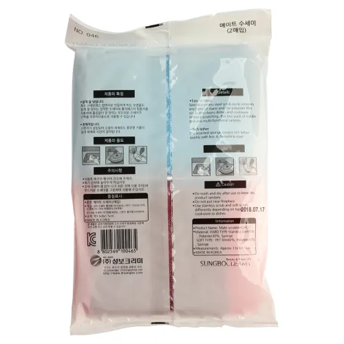 Губка-скраббер Mate Scrubber от бренда Sung Bo Cleamy — это эффективное и удобное решение для мытья посуды. Она изготовлена из высококачественных материалов, включая полипропилен, полиэстер, нержавеющую сталь и губку. Благодаря своей конструкции скраббер улучшает пенообразование, что помогает снизить расход средств для мытья посуды.