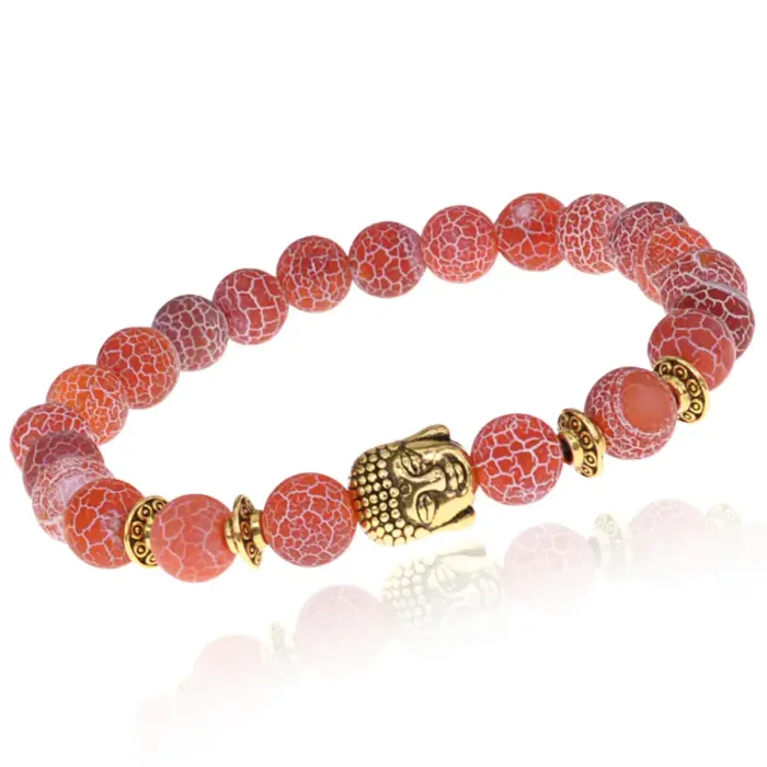 Браслет-амулет Будда с нат. камнем Африканский агат 8мм BSHE-01-04G