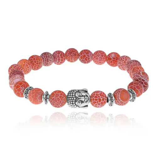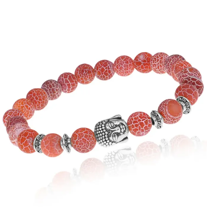 Стрейч-браслет с внутренним диаметром около 5,5 см и бусинами диаметром 8 мм из натурального камня — Африканского агата. Бусины Будды выполнены из бижутерного сплава с покрытием под серебро. Этот браслет символизирует мудрость, просветление и внутренний покой, напоминая о важности духовного развития и гармонии. Будда ассоциируется с пробуждением сознания и глубоким пониманием истинной природы бытия. Африканский агат ценится за свою силу, способствуя достатку, уравновешенности и творческим способностям, а также защищая от врагов и негативных влияний.