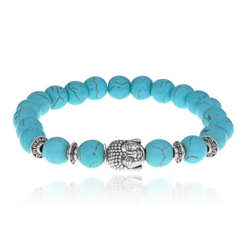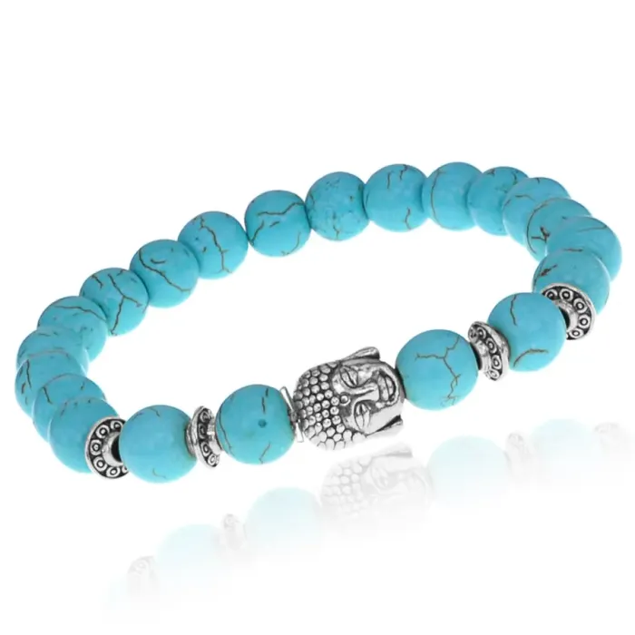 Браслет-амулет Будда с синт. камнем Бирюза 8мм BSHE-01-05S