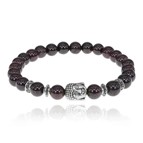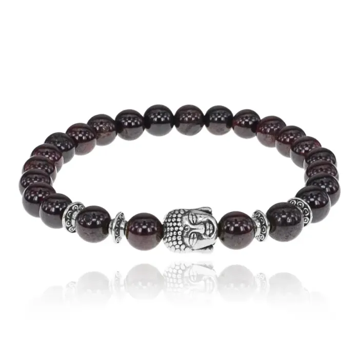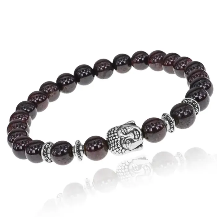 Браслет-амулет Будда с нат. камнем Гранат 7,5 мм BSHE-01-06S