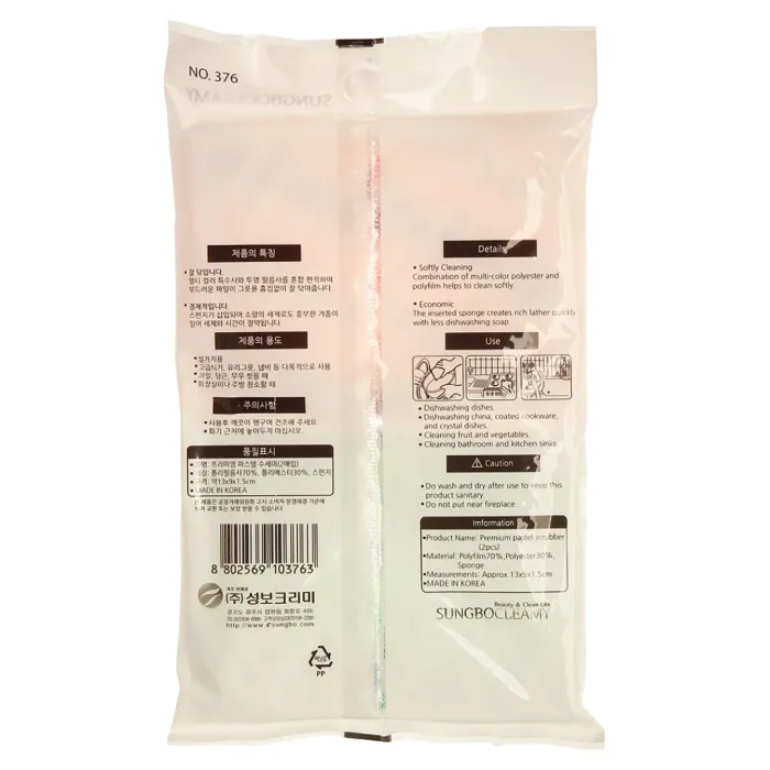Скрубберы для мытья посуды Premium Pastel Dich Scrubber Sung Bo Cleamy 2 шт