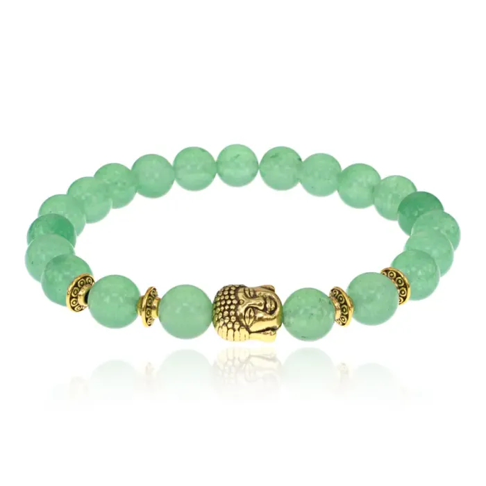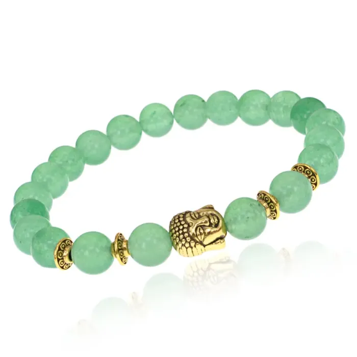 Стрейч-браслет с бусинами из нефрита и декоративными элементами с изображением Будды.
