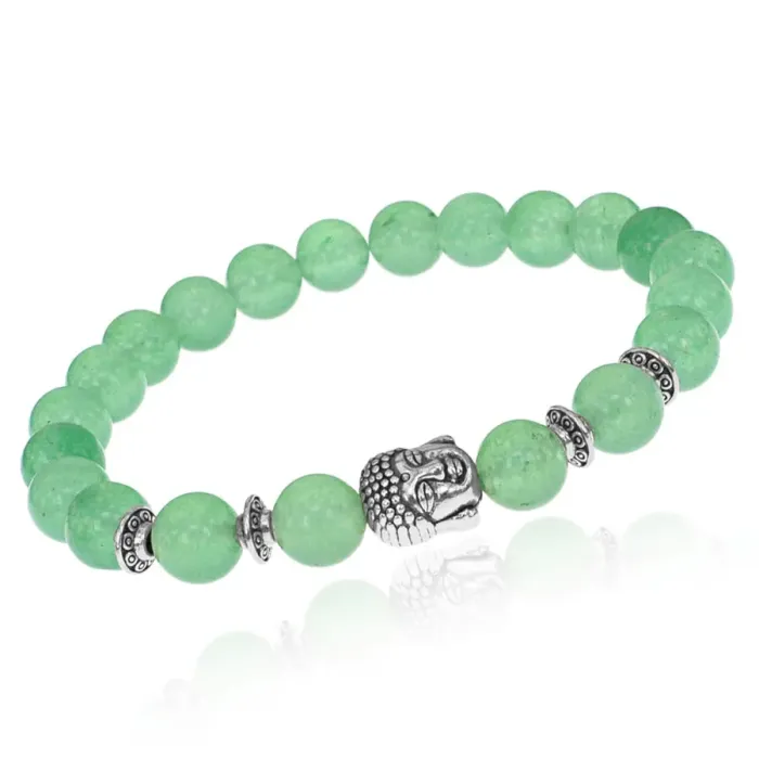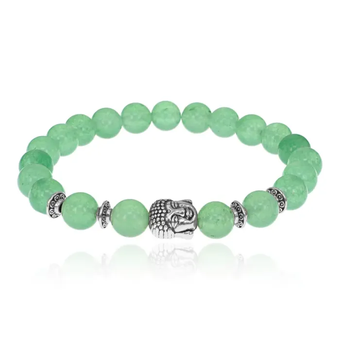 Стрейч-браслет с подвеской в виде головы Будды и бусинами из нефрита.