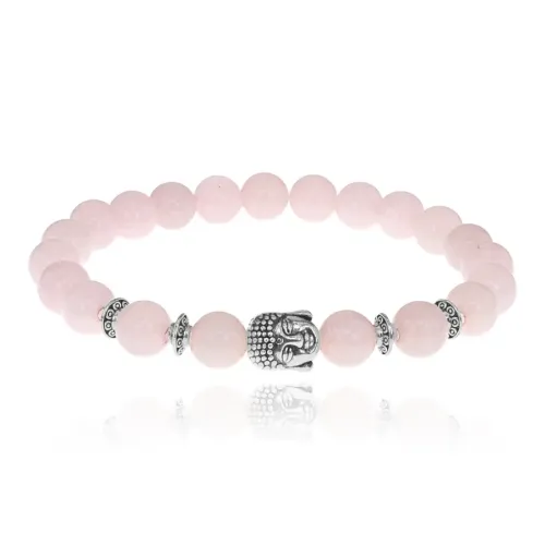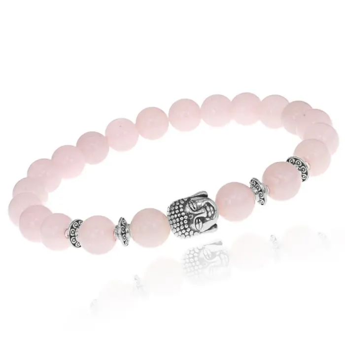 Браслет-амулет Будда с нат. камнем Розовый кварц 8мм BSHE-01-15S