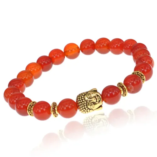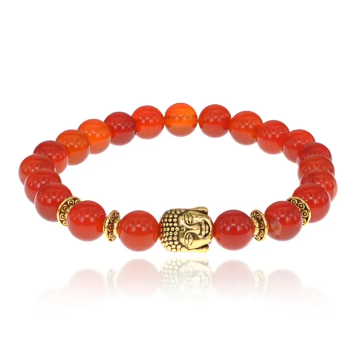 Браслет-амулет Будда с нат. камнем Сердолик 8мм BSHE-01-17G