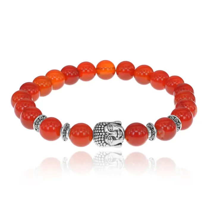 Браслет-амулет Будда с нат. камнем Сердолик 8мм BSHE-01-17S