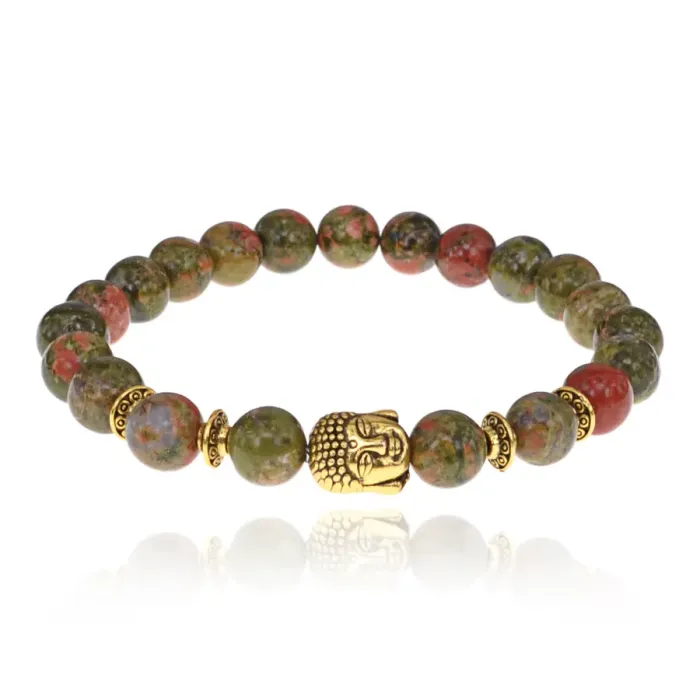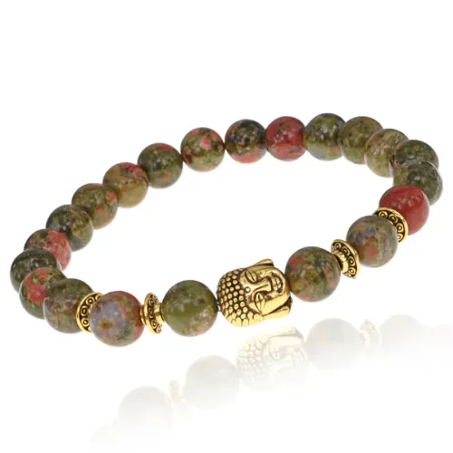 Браслет-амулет Будда с нат. камнем Унакит 8мм BSHE-01-20G