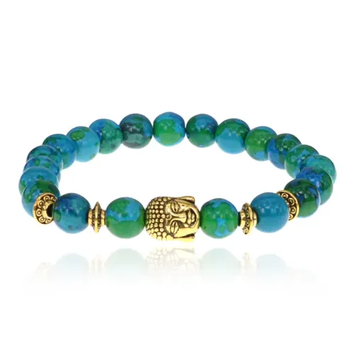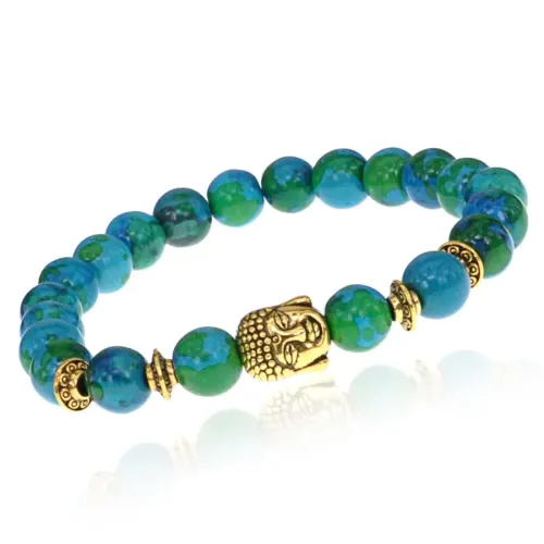 Браслет-амулет Будда с синт. камнем Хризоколла 8мм BSHE-01-21G