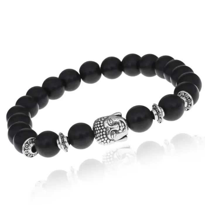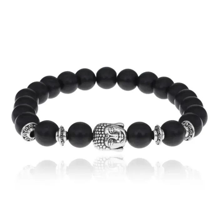 Браслет-амулет Будда с синт. камнем Шунгит 8мм BSHE-01-24S