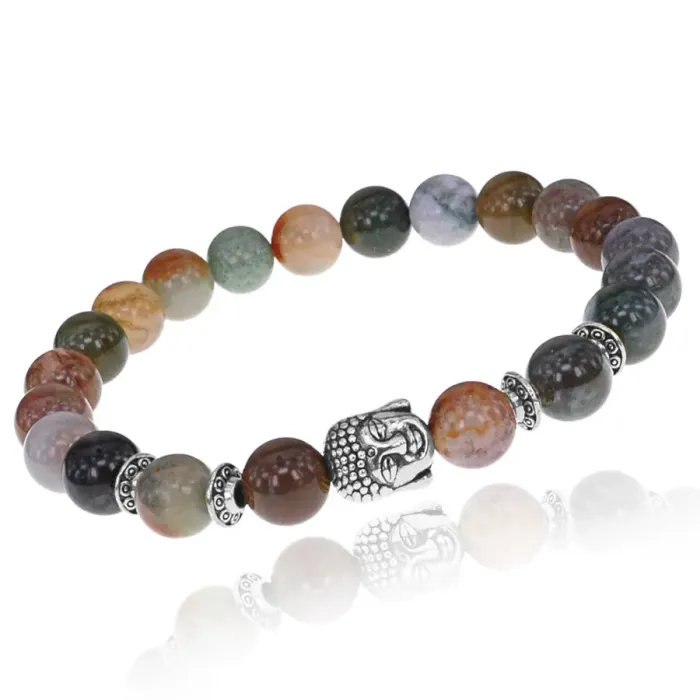 Браслет-амулет Будда с нат. камнем Яшма 8мм BSHE-01-25S