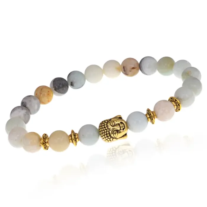 Браслет-амулет Будда с нат. камнем Амазонит 8мм BSHE-01-26G