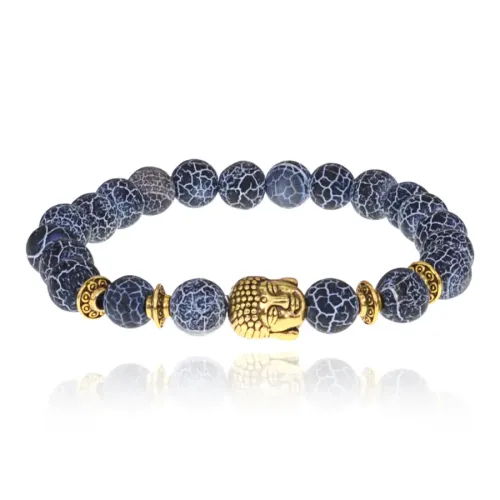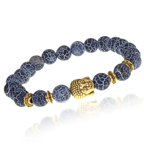 Браслет-амулет Будда с нат. камнем синий Африканский агат 8мм BSHE-01-27G