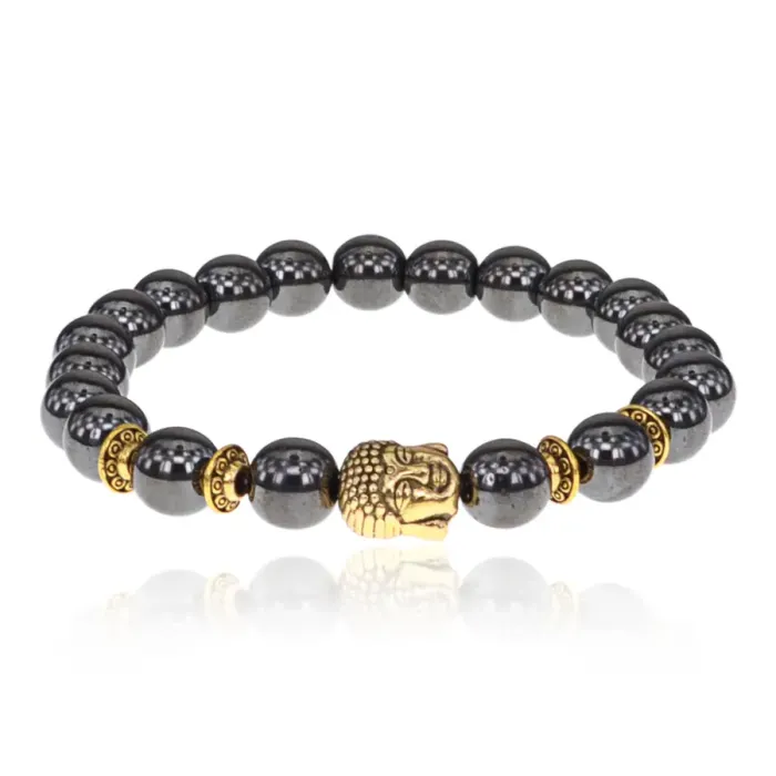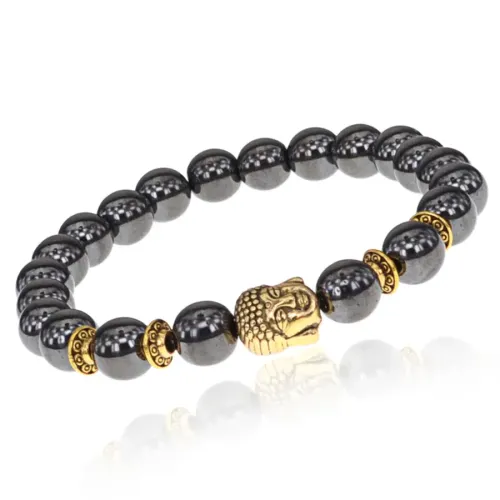 Браслет-амулет Будда с синт. камнем Гематит 8мм BSHE-01-28G