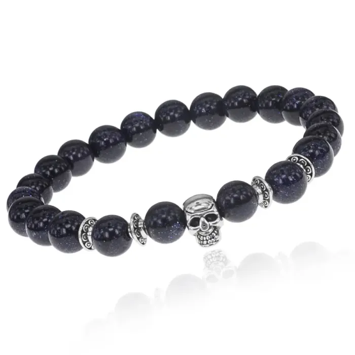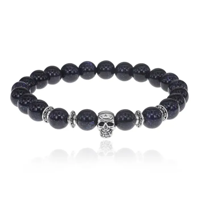 Браслет-амулет Череп с синт. камнем Синий авантюрин 8 мм BSHE-02-02S
