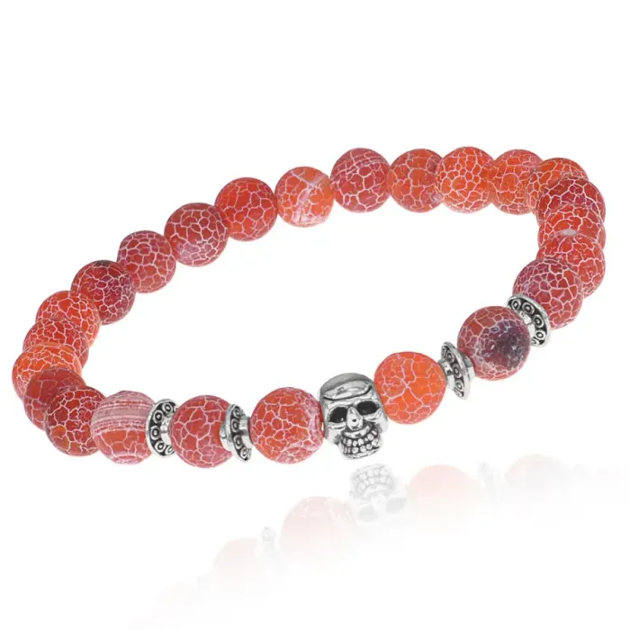 Стрейч-браслет с бусинами из африканского агата и декоративным элементом в виде черепа.