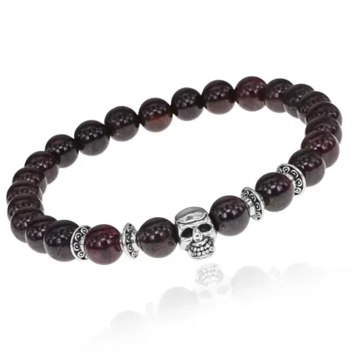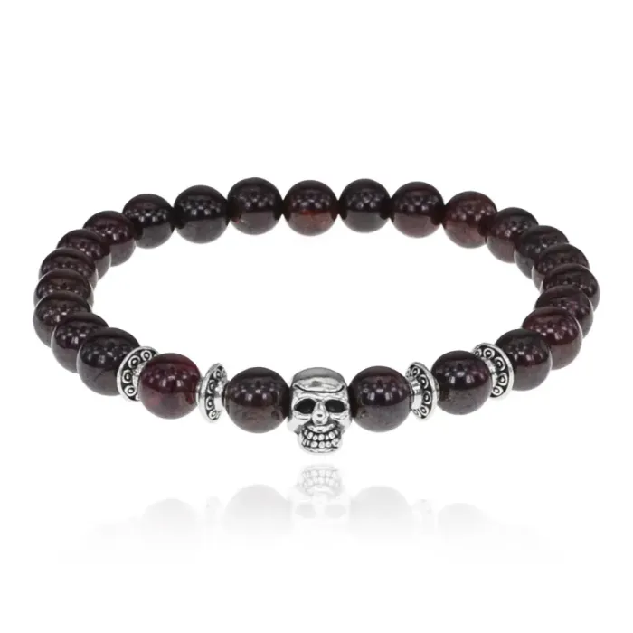 Браслет-амулет Череп с нат.камнем Гранат 7,5мм BSHE-02-06S