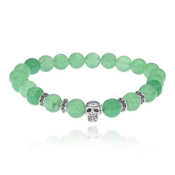 Браслет-амулет Череп с нат. камнем Нефрит 8мм BSHE-02-13S