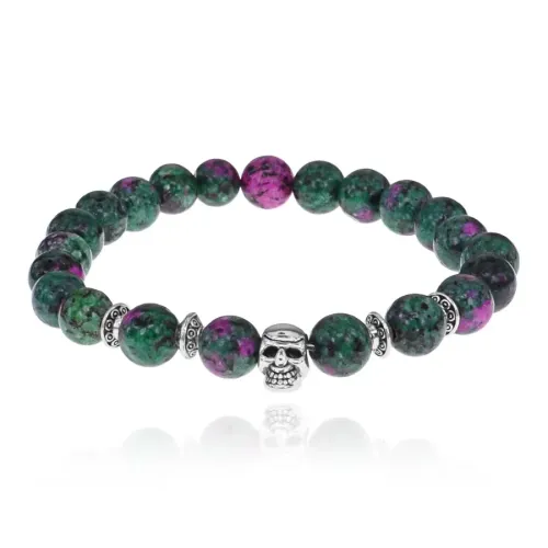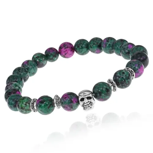Браслет-амулет Череп с синт. камнем Цоизит 8мм BSHE-02-22S