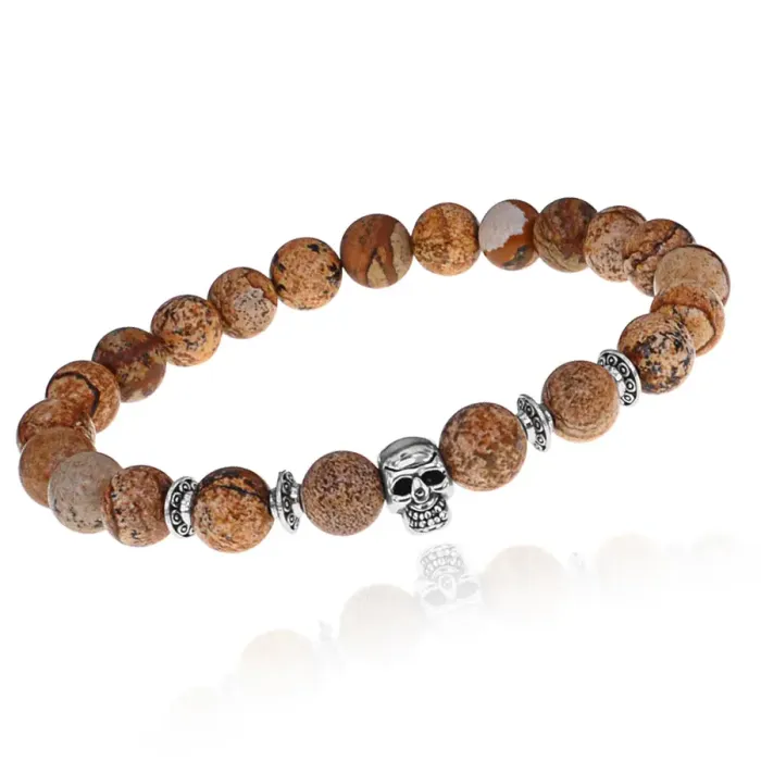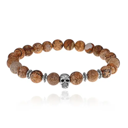 Браслет-амулет Череп с нат.камнем Песочная яшма 8мм BSHE-02-30S
