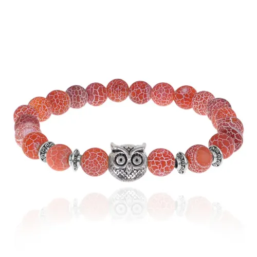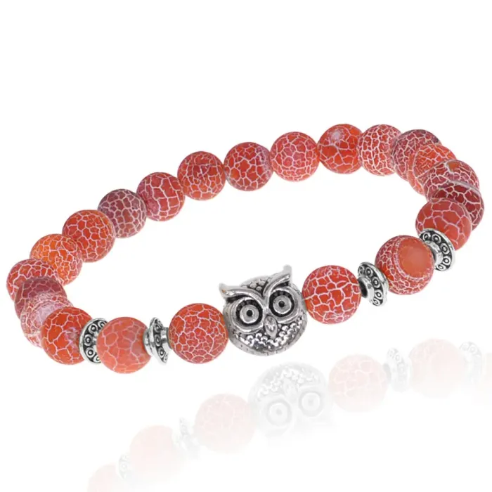 Стрейч-браслет с бусинами из натурального африканского агата в виде амулета-совы.