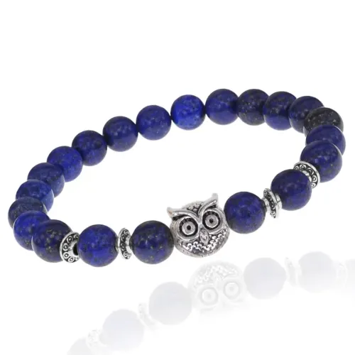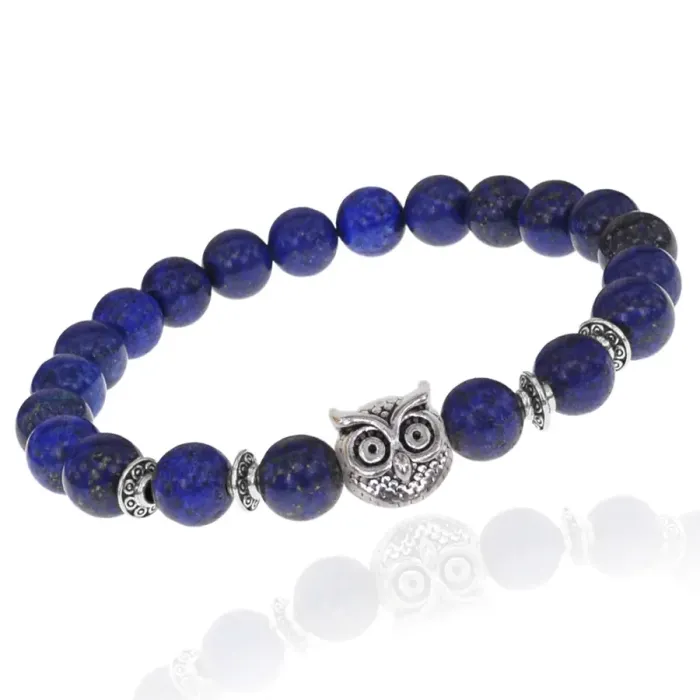 Браслет-амулет Сова с нат.камнем Лазурит 8мм BSHE-03-10S