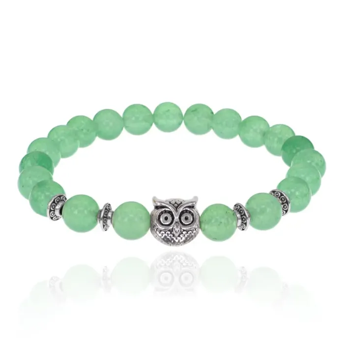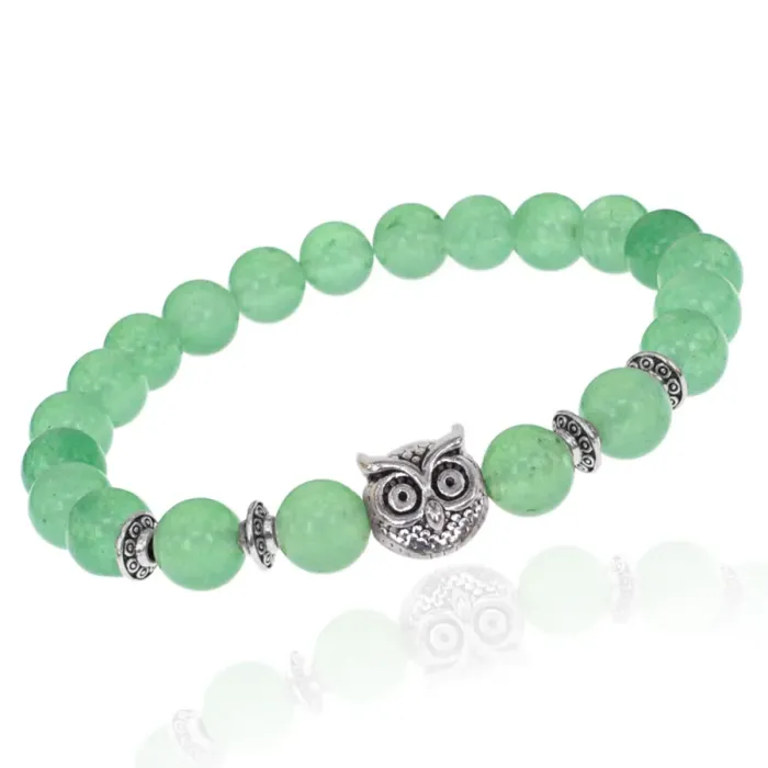 Браслет-амулет Сова с нат. камнем Нефрит 8мм BSHE-03-13S