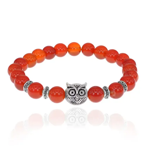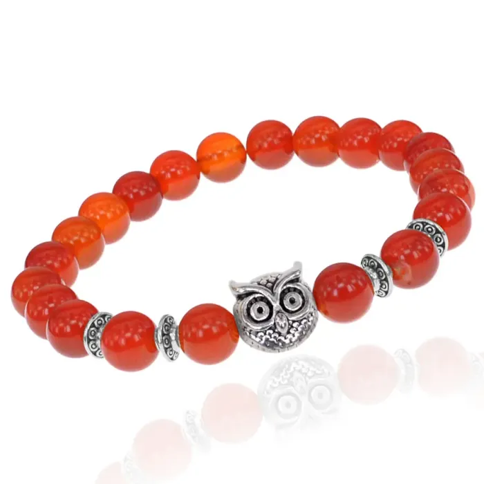 Браслет-амулет Сова с нат. камнем Сердолик 8мм BSHE-03-17S