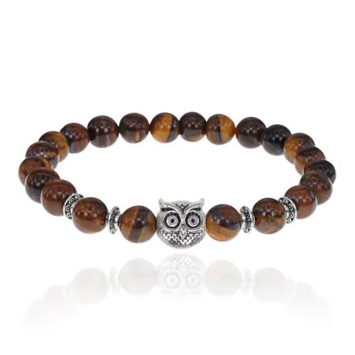 Браслет-амулет Сова с нат. камнем Тигровый глаз 8мм BSHE-03-19S