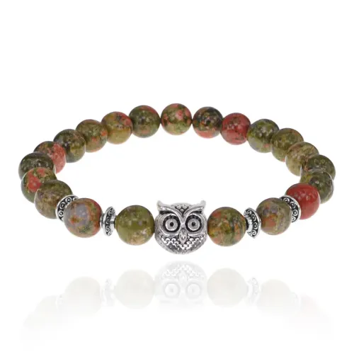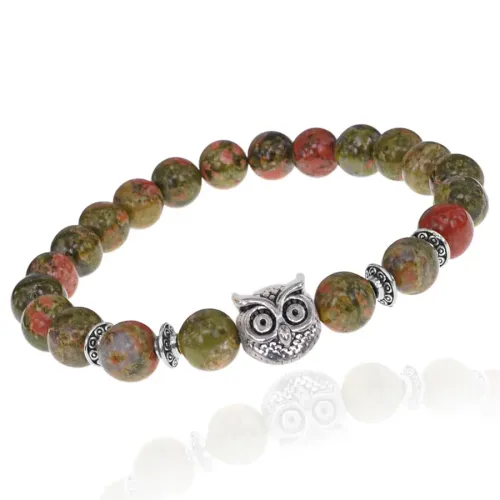 Браслет-амулет Сова с нат. камнем Унакит 8мм BSHE-03-20S